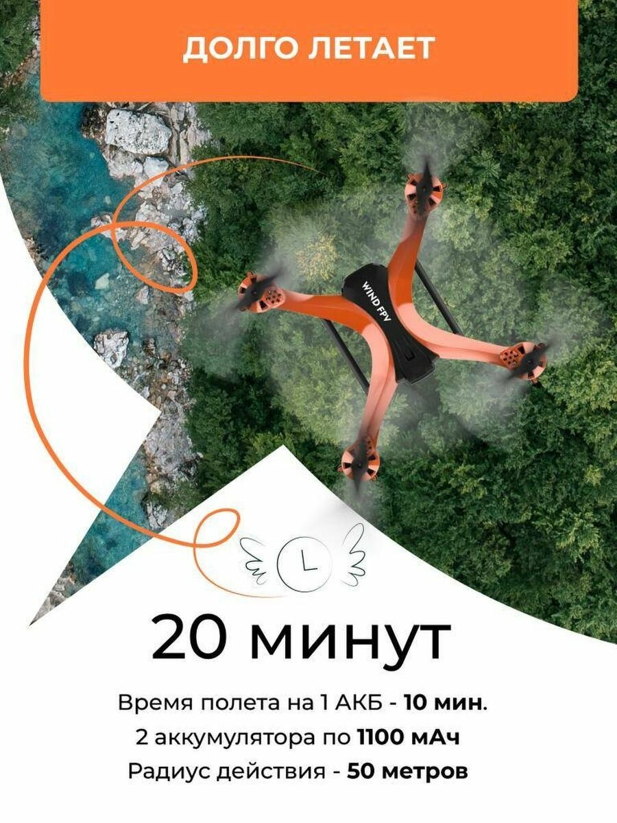 Квадрокоптер на радиоуправлении HIPER HQC-0038 WIND FPV оранжевый