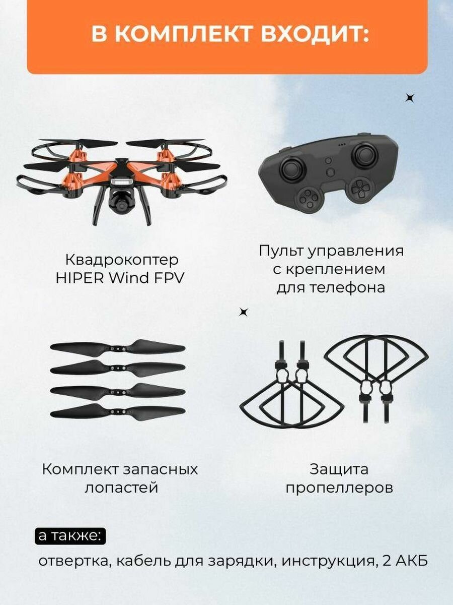 Квадрокоптер Hiper WIND FPV 480р WiFi ПДУ оранжевыйчерный