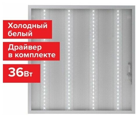 Светильник светодиодный с драйверомхолодный белыйармстронг SONNEN ЭКО6500 K595×595х19 мм36 Втпрозрачный237153