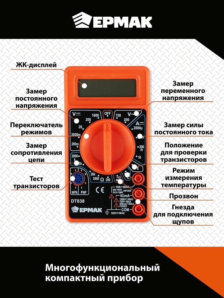 Ермак 660005 Мультиметр электронный 838 ермак (звук)