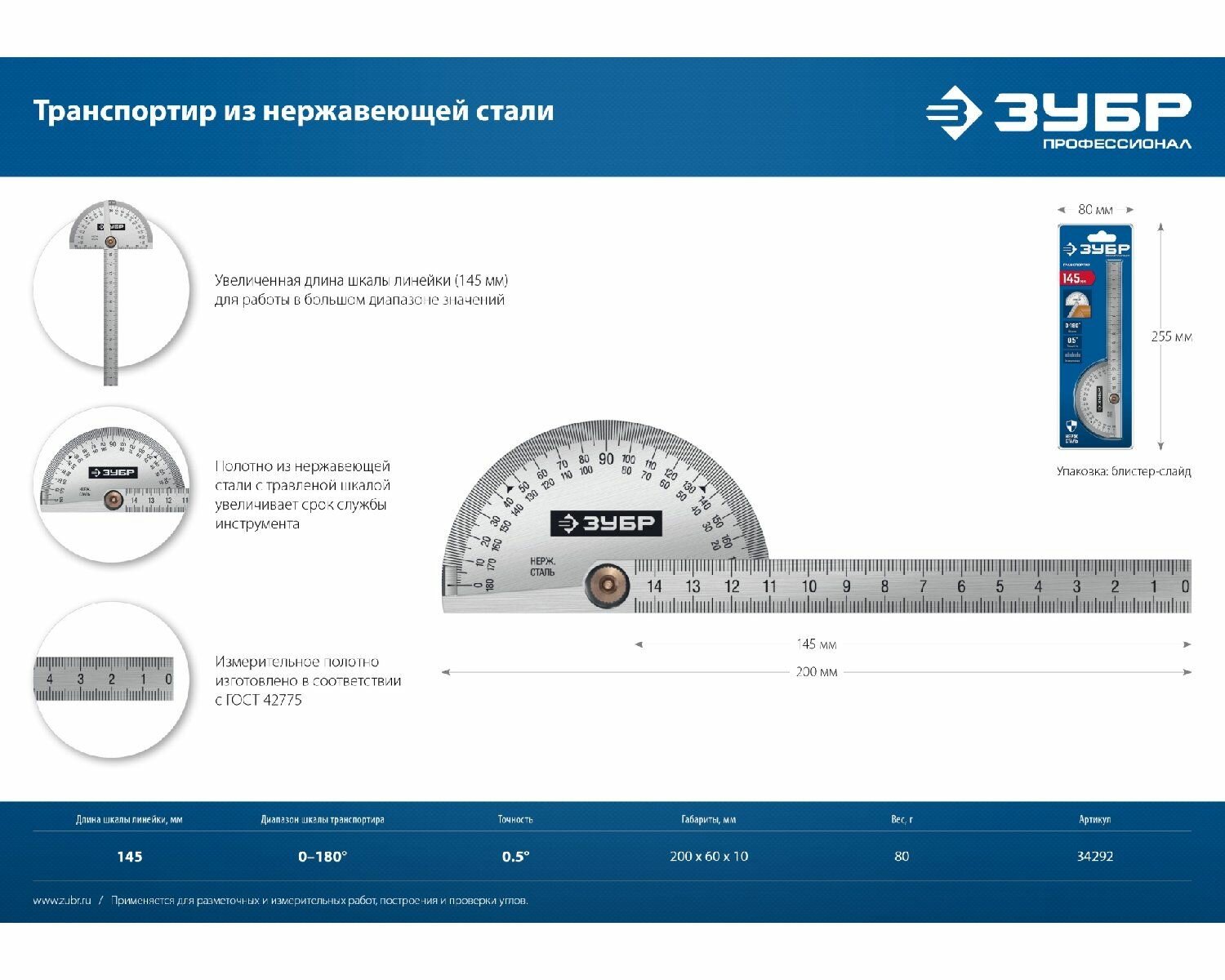СохранитьЗУБР 100 мм, нерж. сталь, транспортир (34292_z01) (34292_z01) интересное: