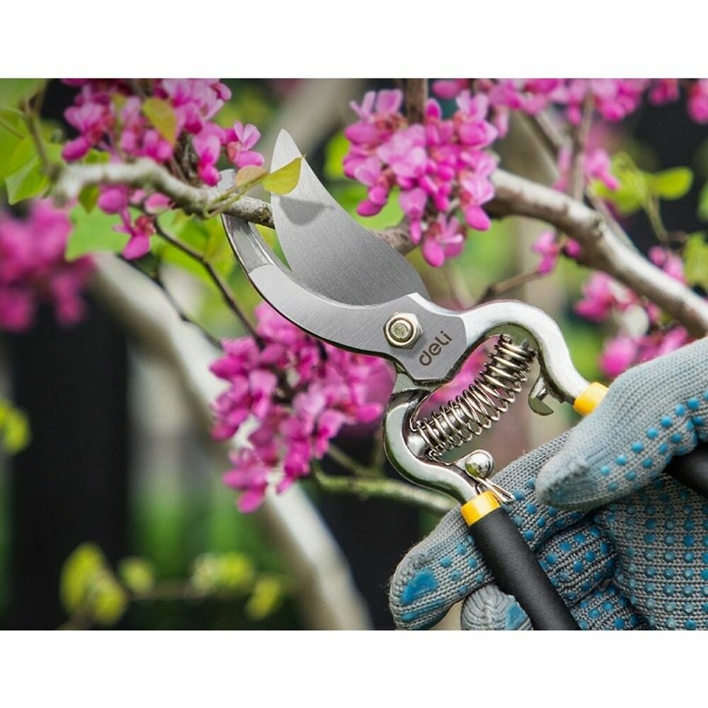 Секатор для цветов и кустарников Deli DL2778 210мм для дачи, сада, огорода, растений, орхидей, веток (макс диаметр резки 20 мм, термообработанная поверхность, противоскользящая рукоять)