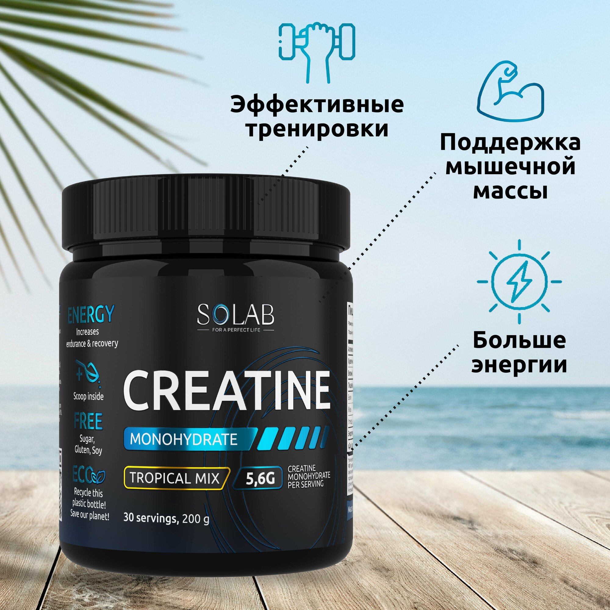Купить SOLAB Креатин моногидрат порошок 30 порций, Creatine Monohydrate, вкус тропик, 200 гр спортивное питание