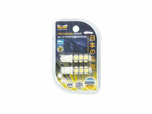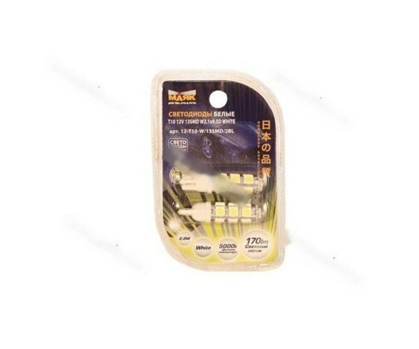 Лампа Светодиод 12v5w W2.1x9.5d Маяк 13smd Белая 2шт Маяк арт. 12-T10-W13SMD2BL