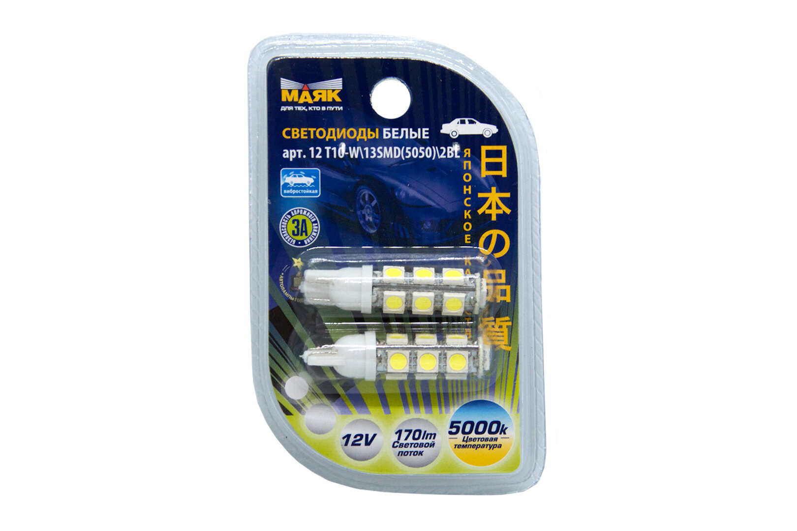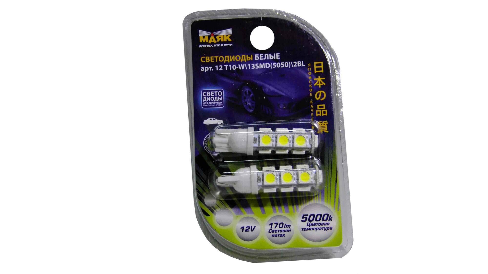 Маяк 12T10-W13SMD2BL лампа 12v w2.1x9.5d бесцокольная, 13 диодов smd (уп. 2 шт.) 12t10-w_13smd_2bl