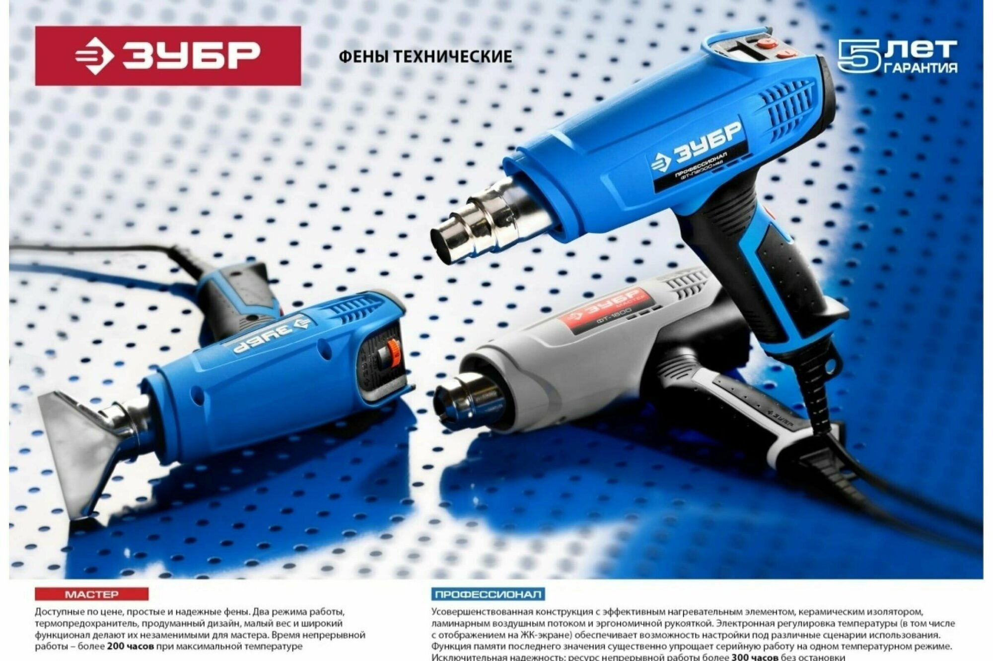 Строительный фен Зубр ФТ-П2000 М2ДК