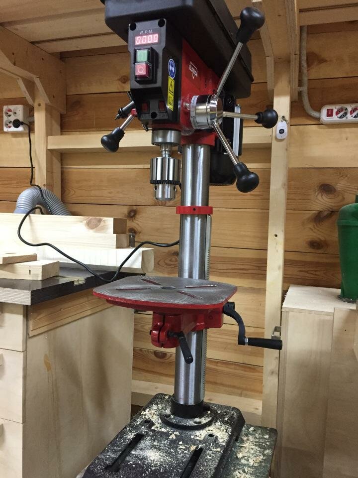 | Плюсы: | Сделан добротно, крепко, ровно. Люфтов нет от слова "совсем". Люфтят только кривые сверла. Вариатор, не в пример, удобнее перекидки ремня. Удобный и ровный стол. Хороший мотор, тихий, мощности пока хватает на все. Большой ход стола по вертикали, возможность повернуть в сторону.
