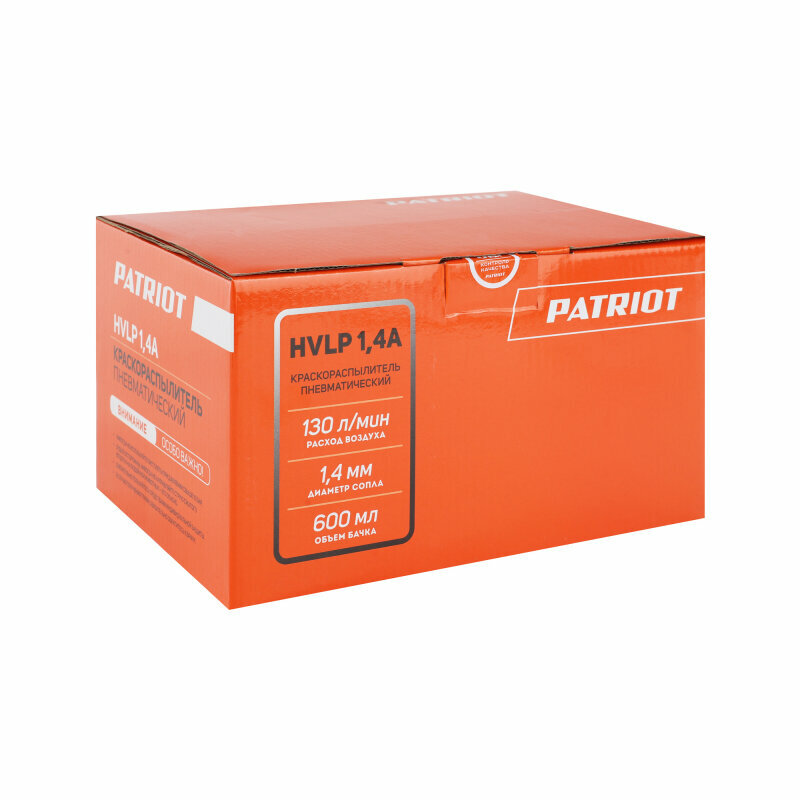 Пневмокраскораспылитель PATRIOT HVLP 1,4A, верхний бачок 0,6 л, сопло 1,4 мм, 130 л/мин, быстросъем 1/4"/ краскораспылитель с бачком / краскопульт пневматический