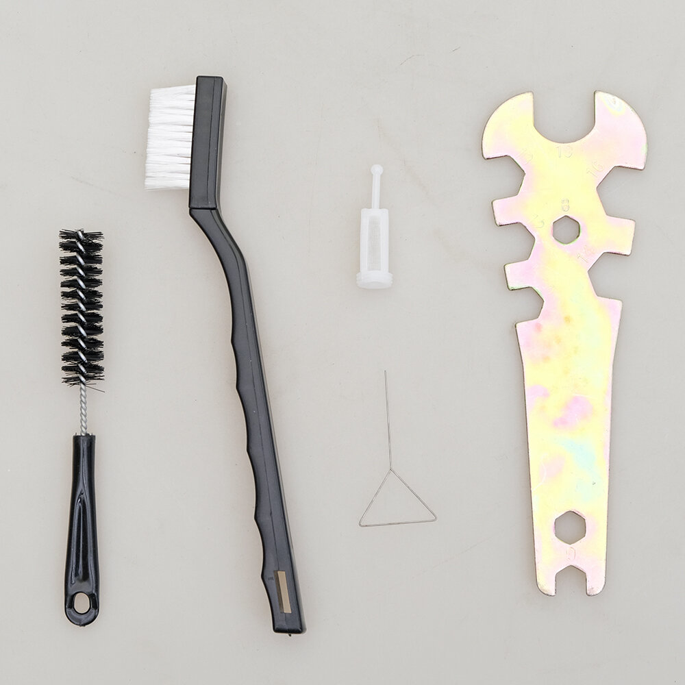 | Комплектация | краскопульт LVMP со сменным комплектом и дюзой 1.3 мм; резьбовой фитинг 1/4" male; пластиковый бачок 0.6 л; фильтр материала; универсальный ключ; щеточка для очистки 2 шт |