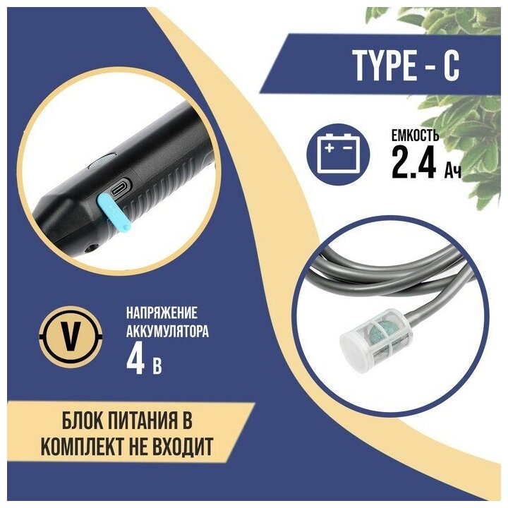 Опрыскиватель аккумуляторный, 4 В, 2.4 Ач, Li-on, 0.8 л/мин, 2 насадки, шланг 3 м