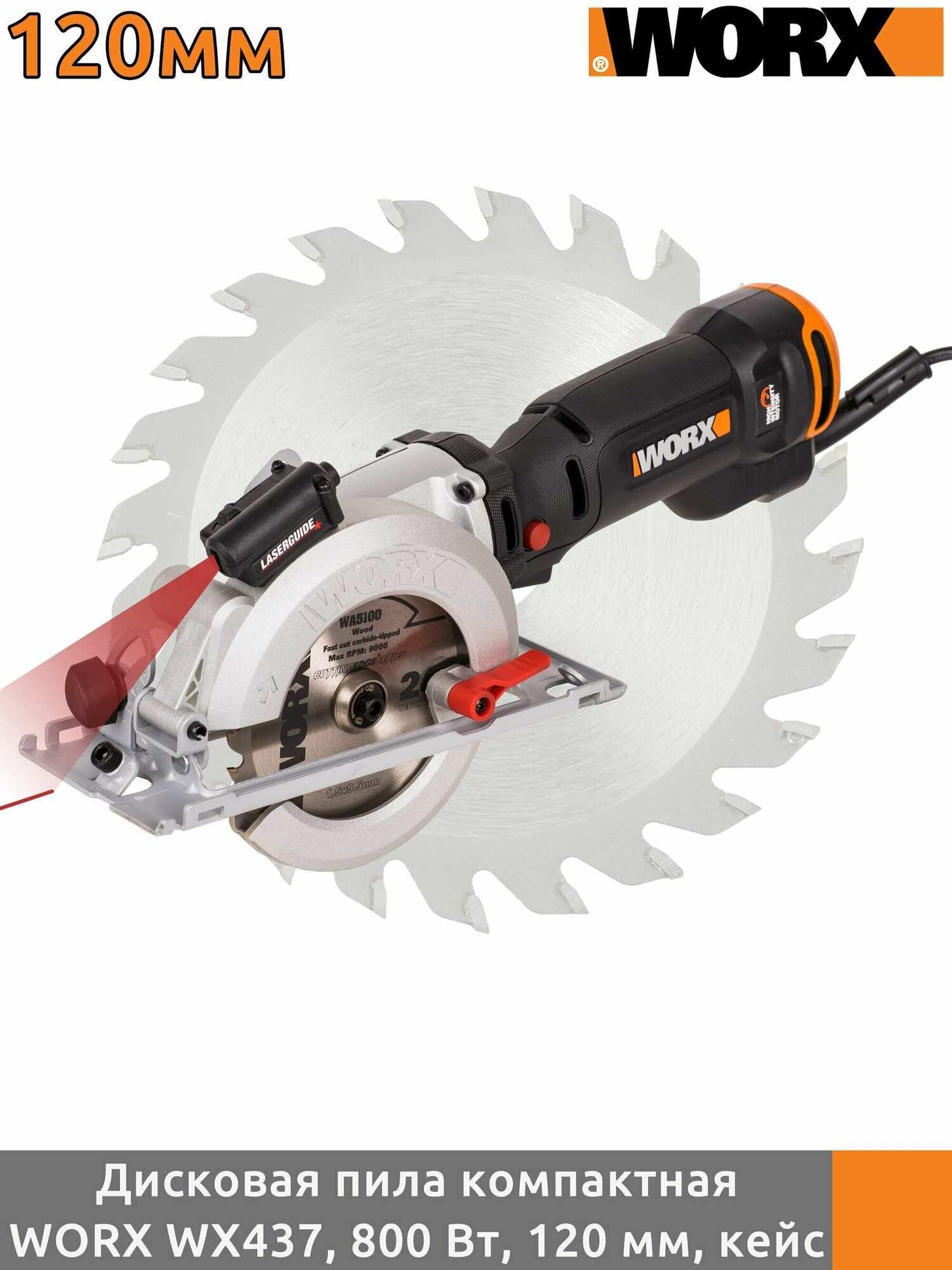 Дисковая пила WORX WX437, 800Вт, 120 мм, кейс