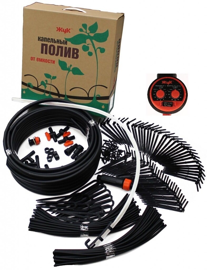 Жук Набор капельного полива от емкости автомат, длина шланга: 18 м,с таймером, кол-во растений:60шт.