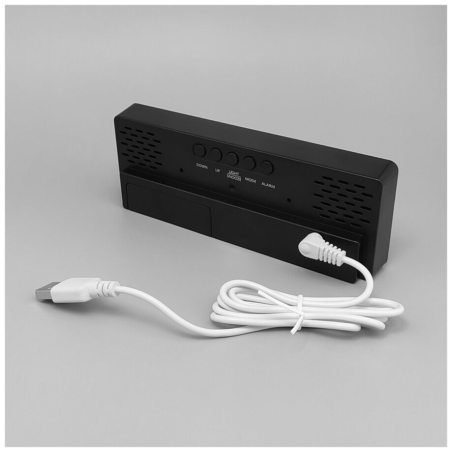 Часы настольные электронные с проекцией: будильник, термометр, календарь, 19.6 х 6.5 см