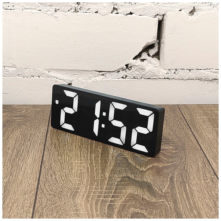 Часы электронные цифровые настольные с будильником, термометром и календарем x0712 ЧБ