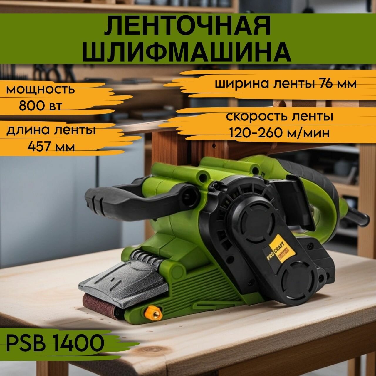 Ленточная шлифмашина ProCraft PBS1400 + струбцины, 800Вт, лента 457х76мм
