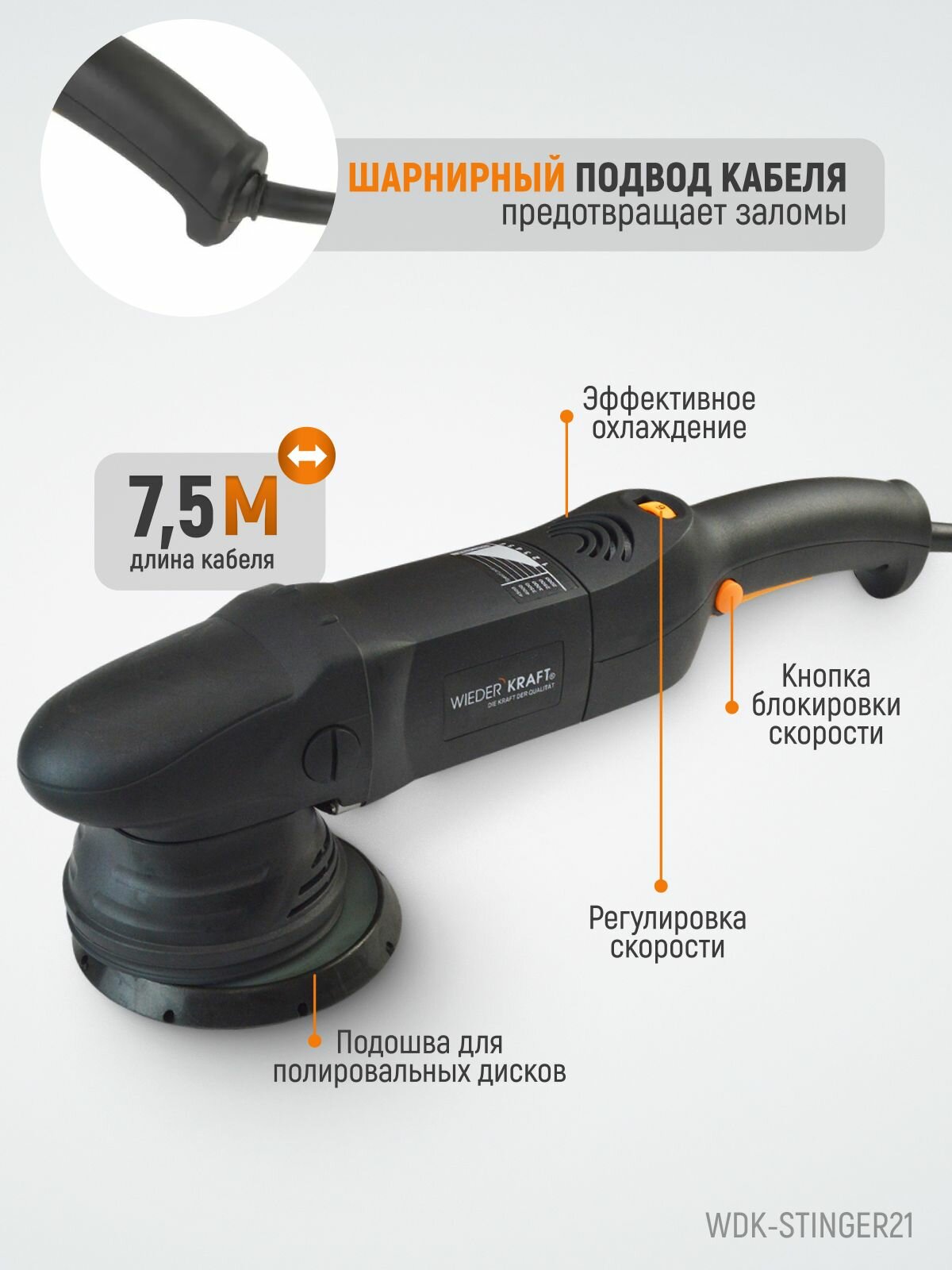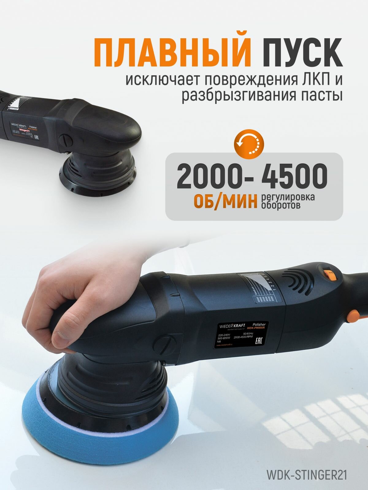 Полировальная машина WIEDERKRAFT WDK-STINGER21, 800 Вт