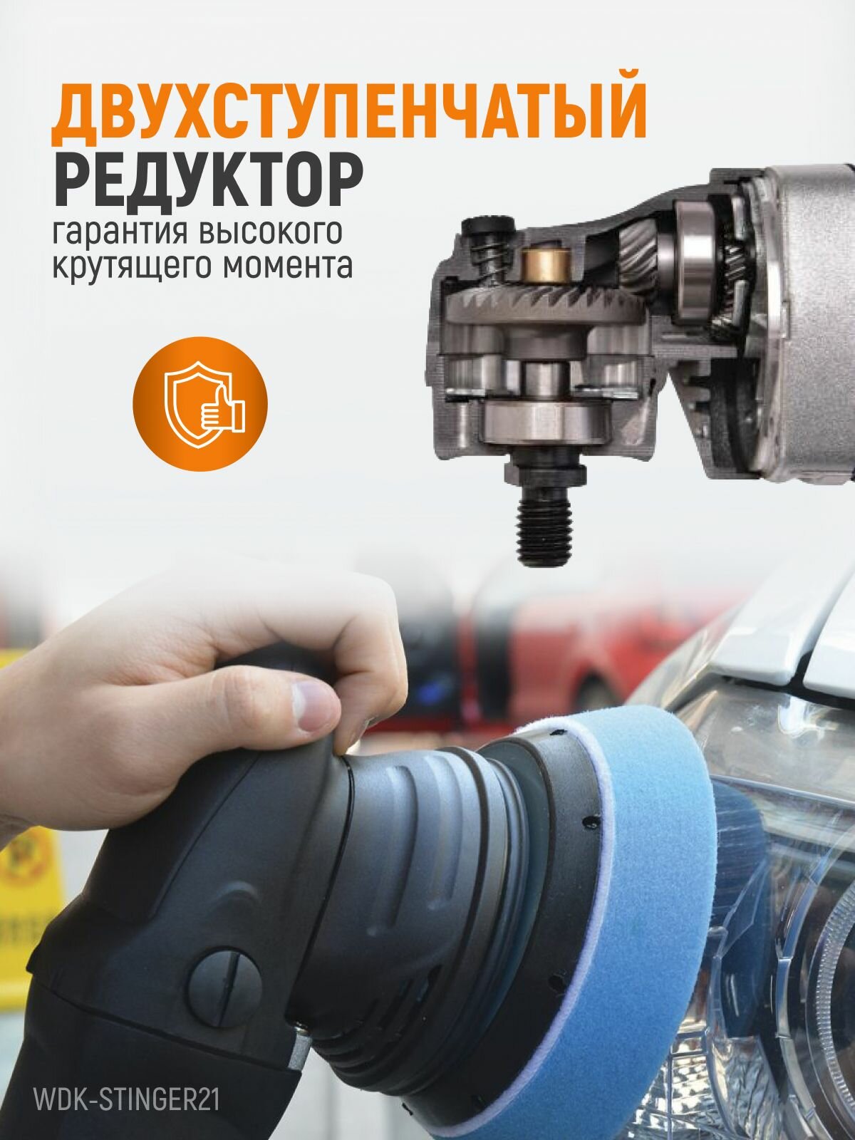Полировальная роторно-орбитальна машина с эксцентриком электрическая WDK-Stinger21 интересное: