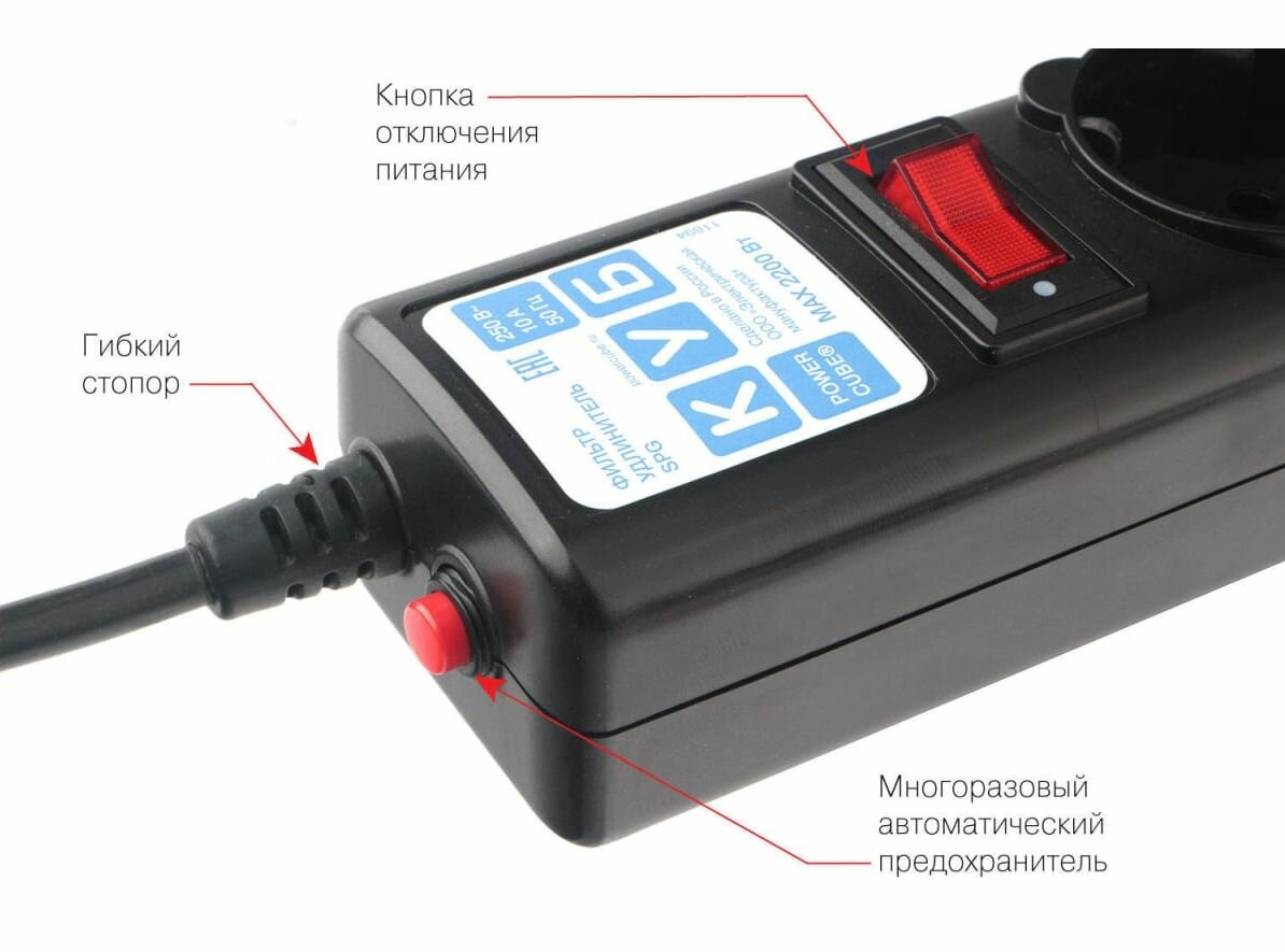Фильтр-удлинитель Power Cube B black (1,9 м, 5 розеток, 10А/2,2кВт) (SPG-B-6-BLACK)