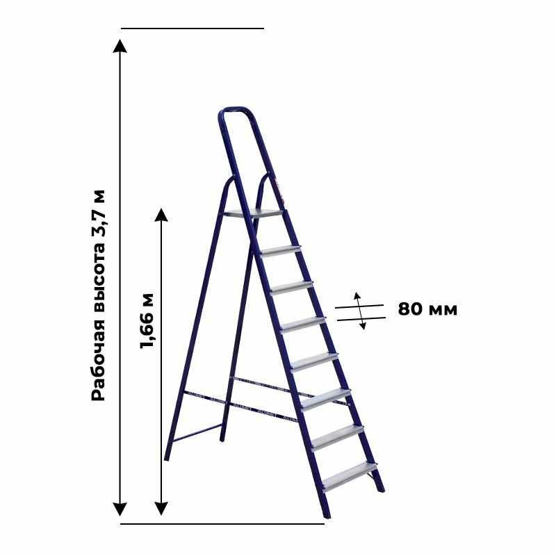 Стремянка 8 ступеней, стальная
