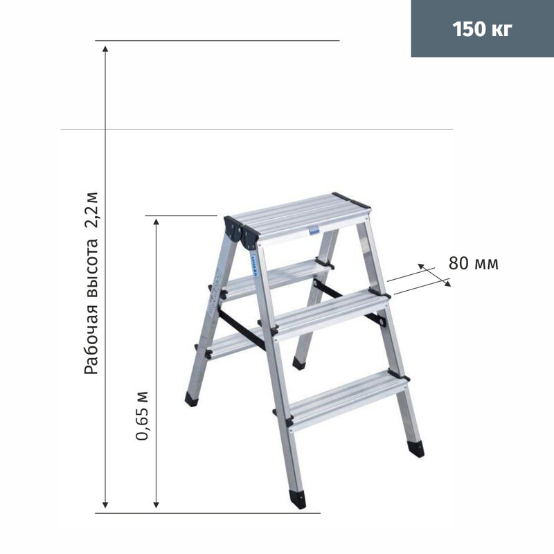 DOPPLO Двусторонняя стремянка, 2х3 ступеньки, раб. высота 2,22 м.