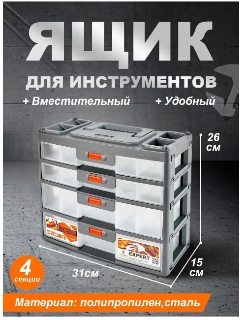 Органайзер для хранения Пластик Репаблик "Expert", для мелочей, 4 секции, свинцово-серый, оранжевый