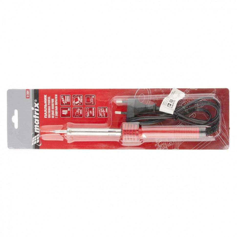 Паяльник, пластиковая рукоятка,медный наконечник с долговечным защитным покрытием,220 В,40W Matrix [913004]