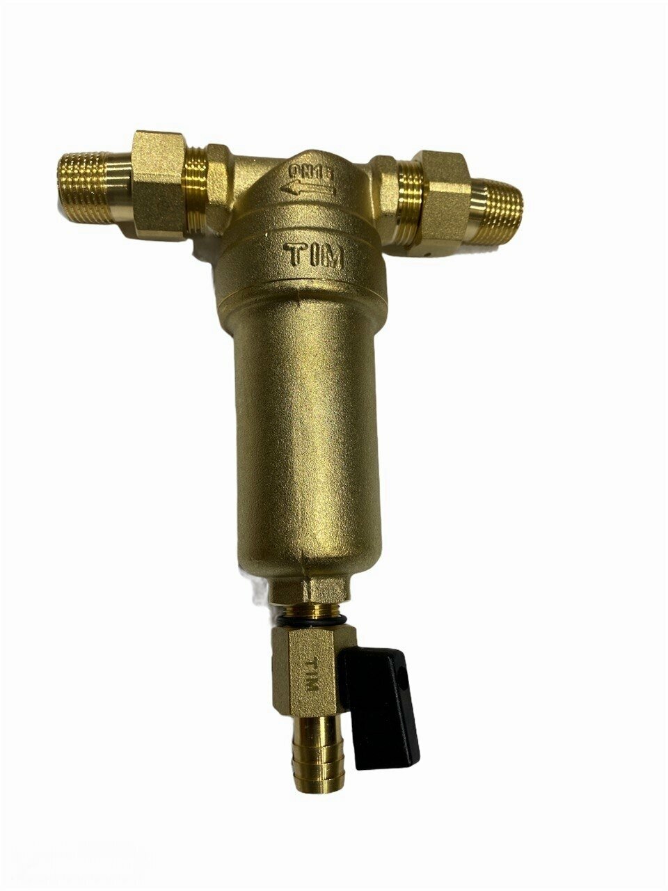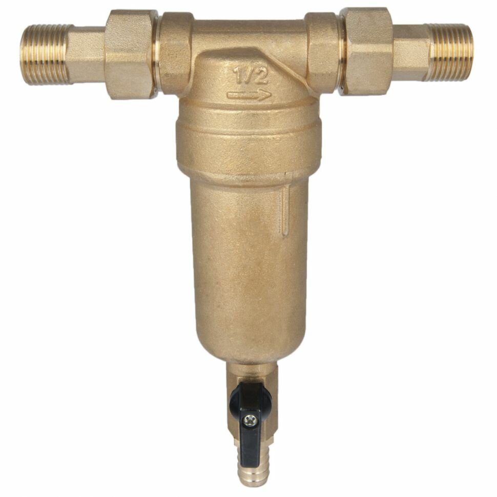 Фильтр самопромывной 1/2" НН с американками и сливным краном, латунный корпус TIM арт. JH-1003Y2