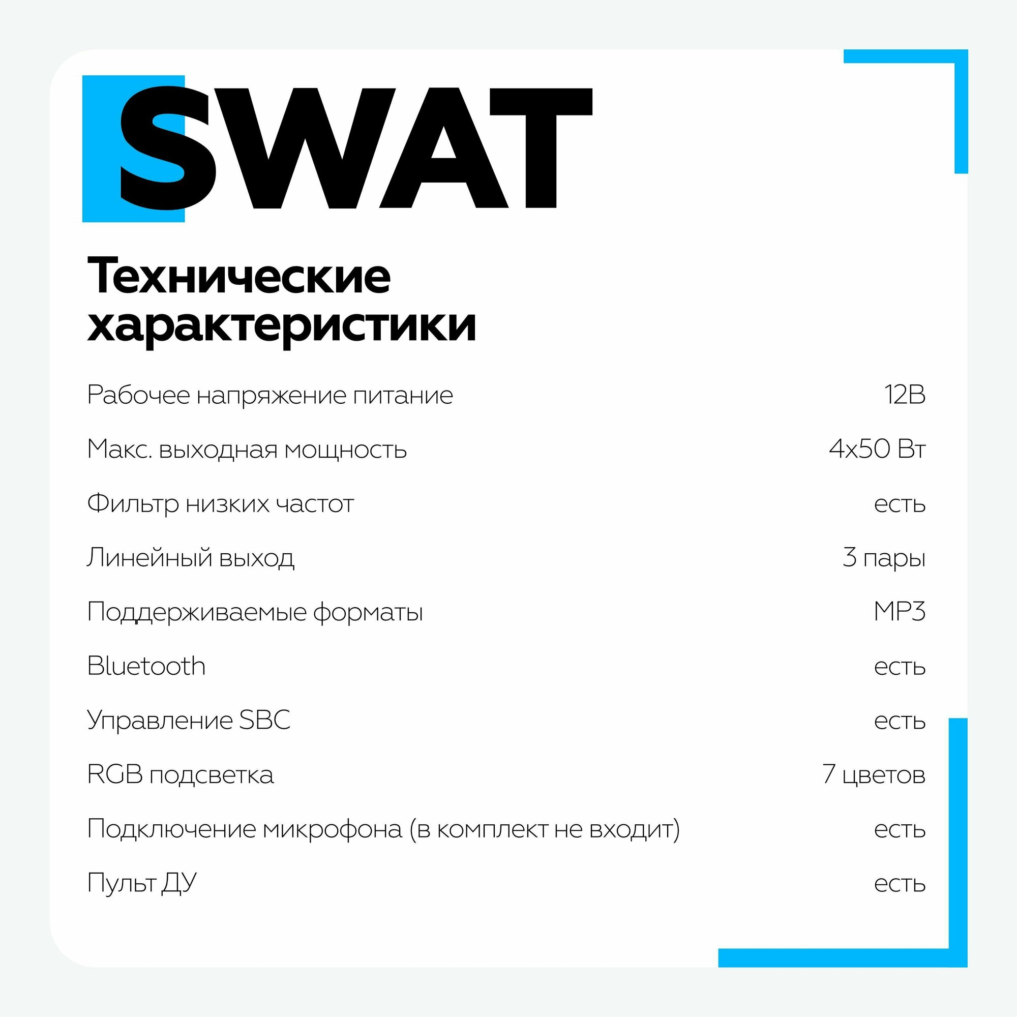 Автомагнитола SWAT WX-2101UB 1DIN / 4х50вт / Bluetooth / MP3 / USB / SD / 2RCA / цветная подсветка / Пульт ДУ