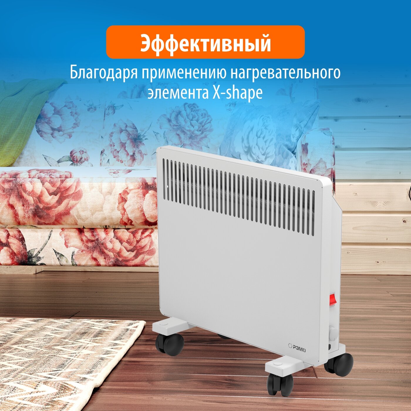 Обогреватель Рэмо СБ-1000.1 W, конвекторный, настенный/напольный, 1000 Вт, 15 м?, белый Рэмо 9382751