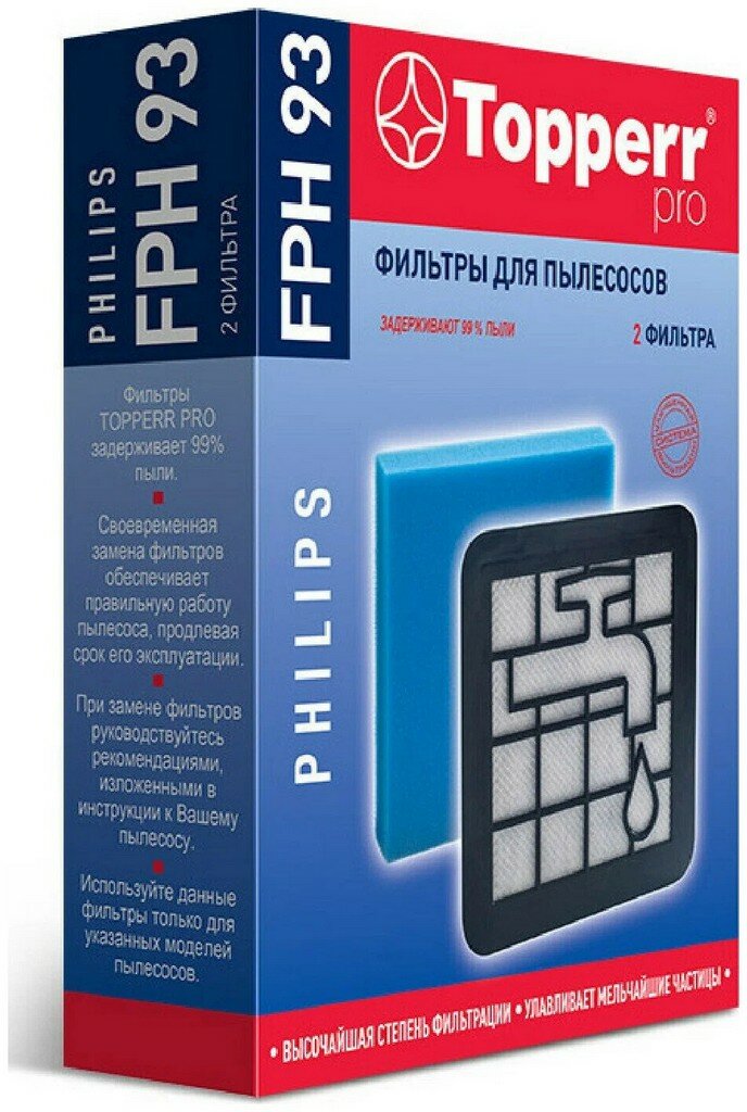 Набор фильтров Topperr FPH 93 для пылесосов Philips, 2 шт. Topperr 4497094