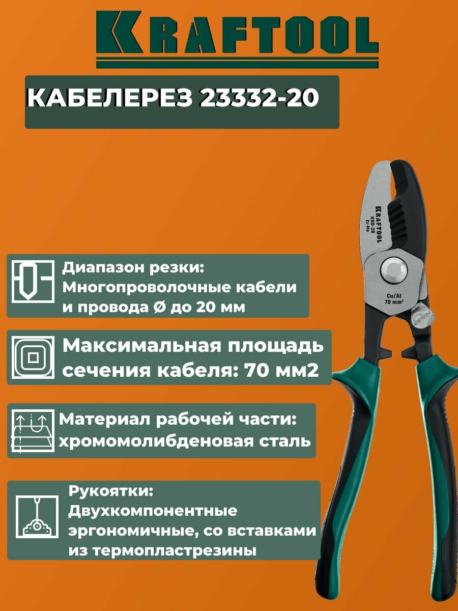 KSD-20 Кабелерез с двойными режущими кромками, KRAFTOOL 23332-20