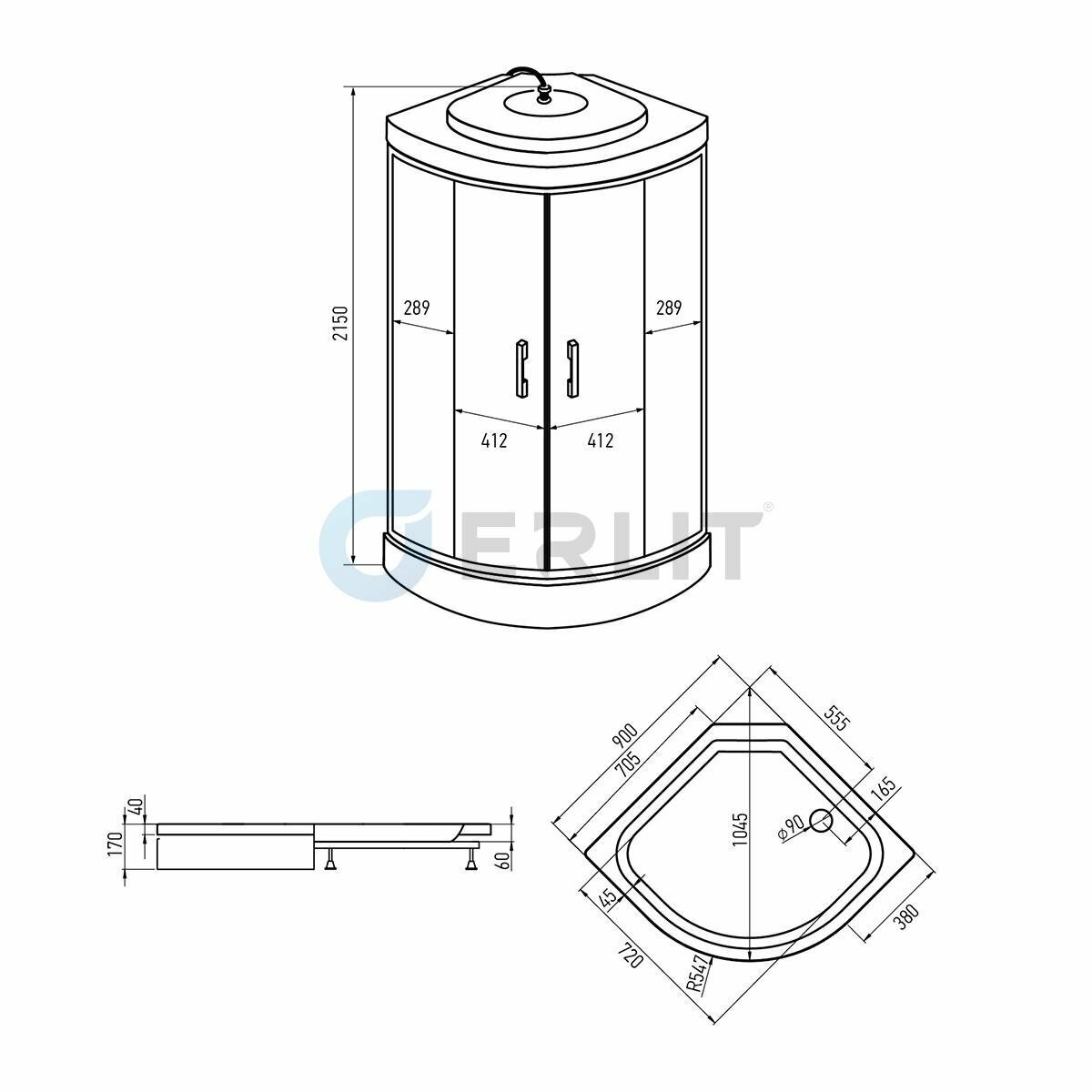 Erlit ДушеваякабинаComfort 900x900x2150 Er3509p-c3-rus .
