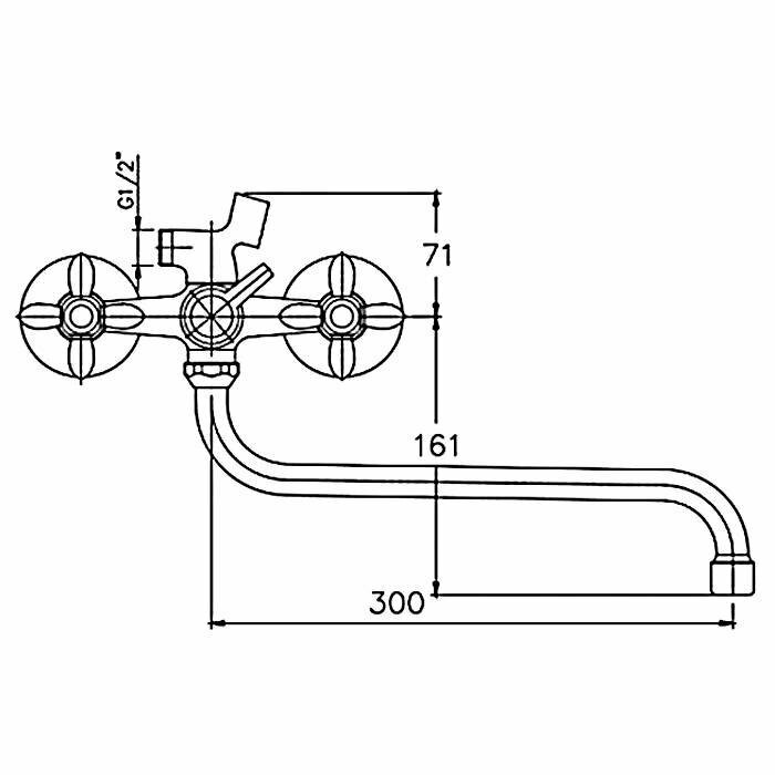 Haiba Смеситель для ванны (Lt) трубчатый поворот.излив-S 300мм,двухвент, картр.перек, хром, HB2227-2