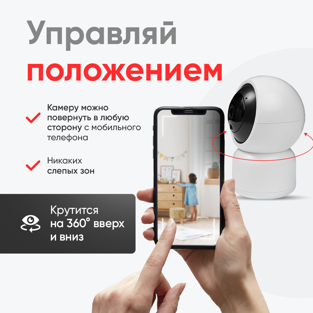 IP-камера видеонаблюдения Wi-Fi для дома с обзором 360 градусов белая