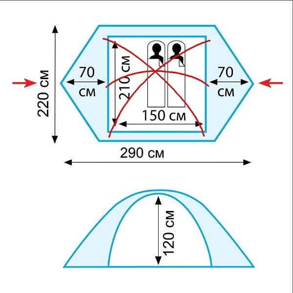 | Габариты внутренней палатки(ДxШxВ) | 210x150x120 cм |