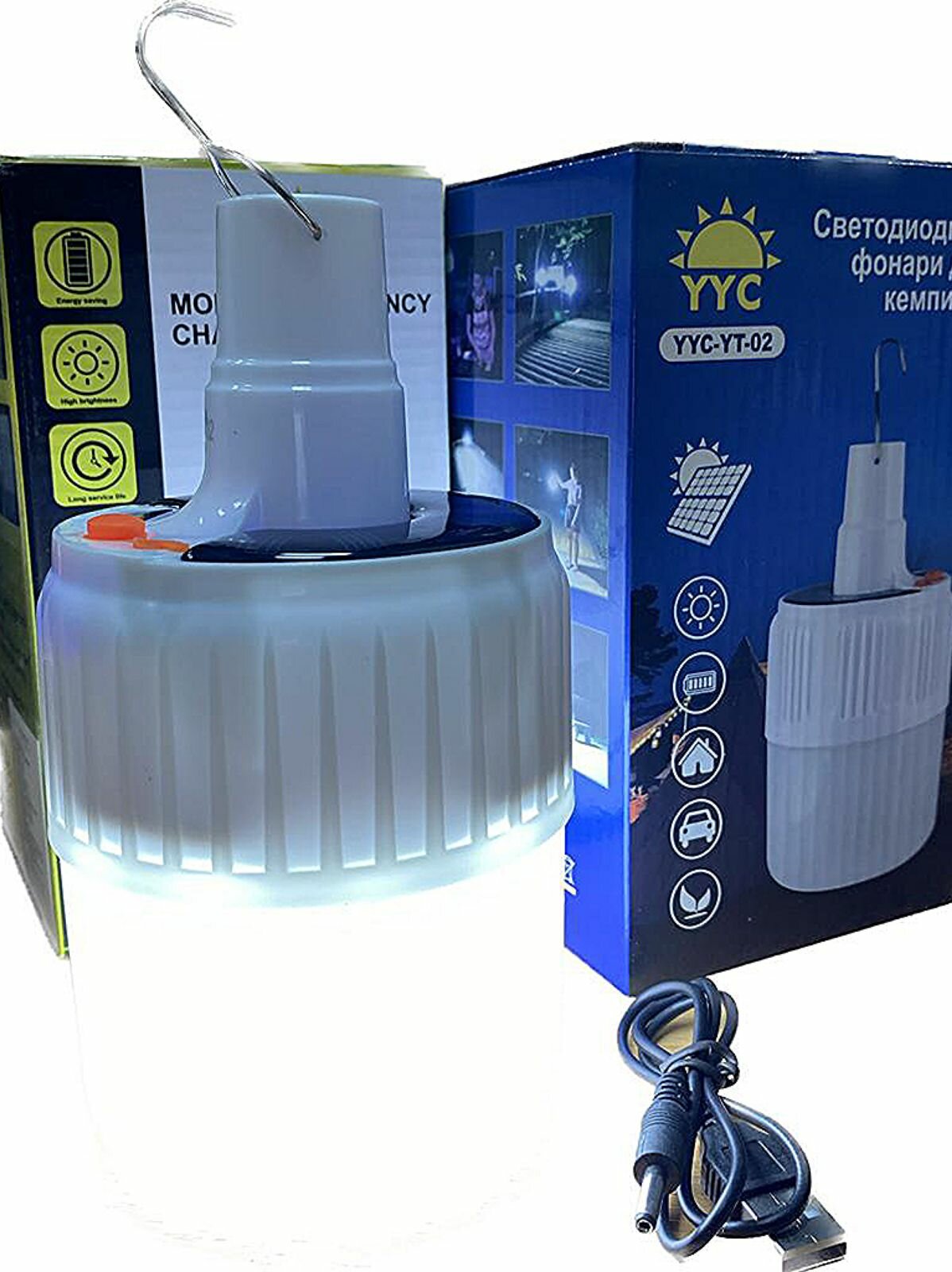 | Плюсы: | Очень яркий светильник с солнечной зарядкой. Его очень легко подвесить куда угодно. Также есть индикатор зарядки, т.е можно зарядить от USB зарядки. Обязательно куплю ещё. |