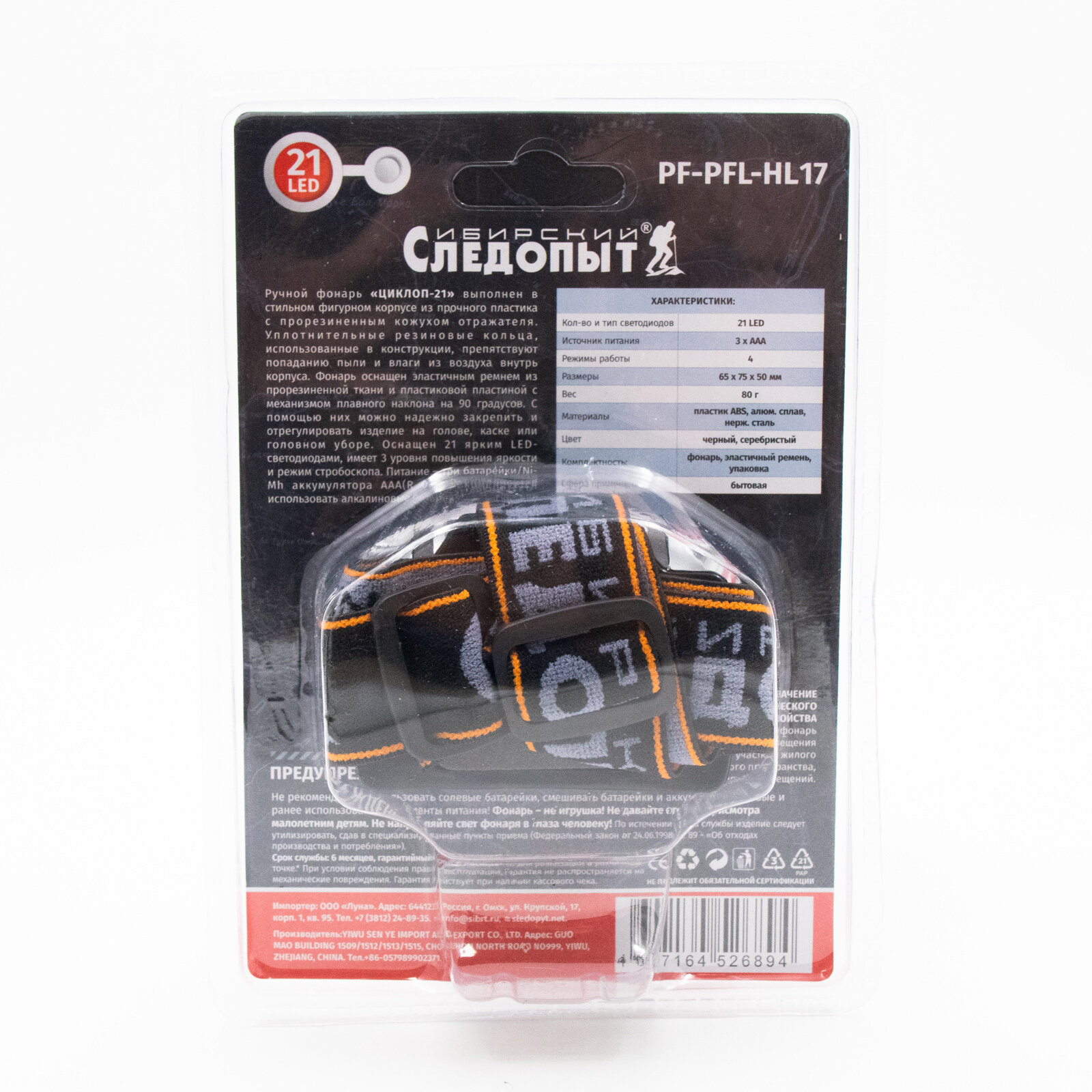 Фонарь налобный сибирский следопыт Циклоп 21L, PF-PFL-HL17