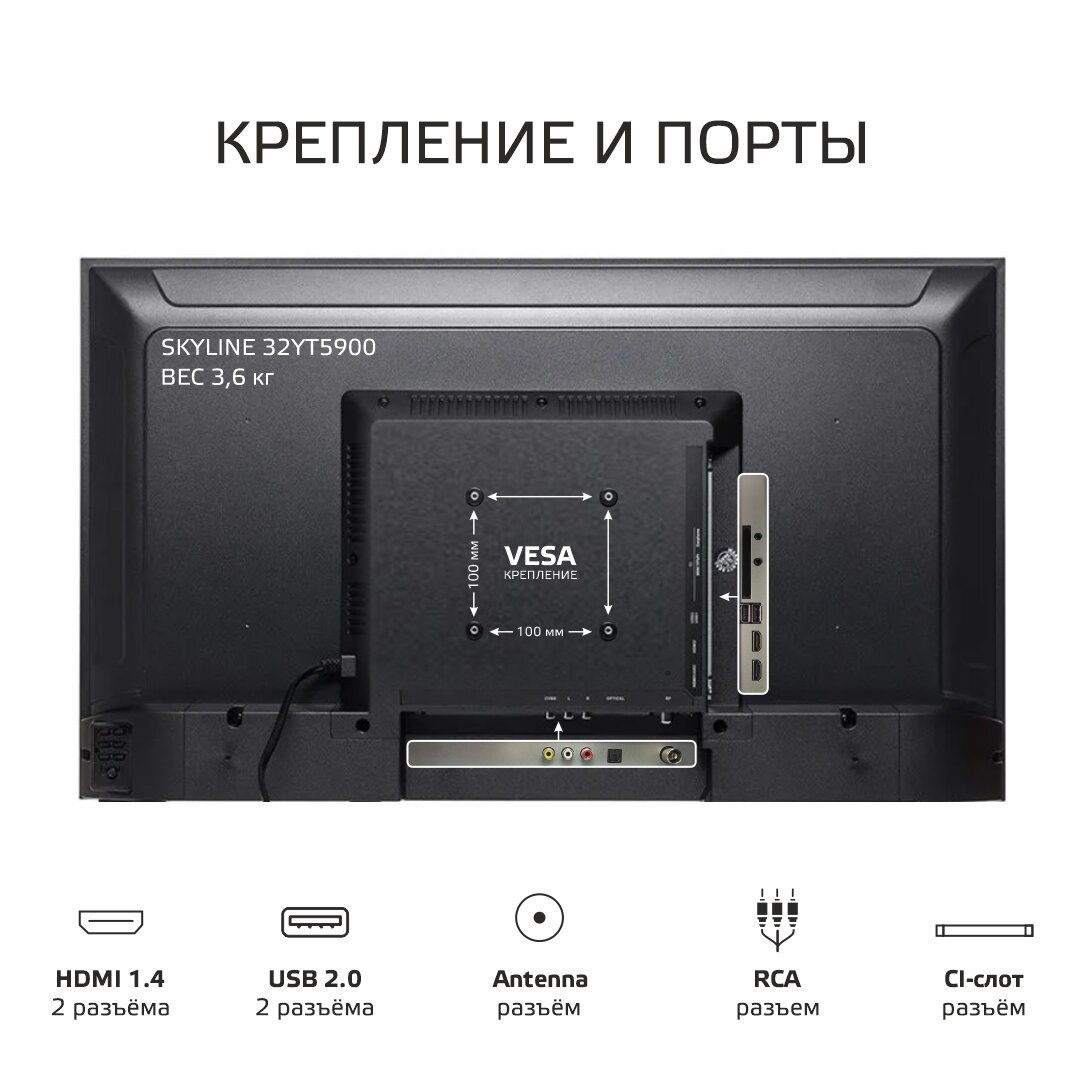 Телевизор SKYLINE 32YT5900 / HD Ready / Direct LED /диагональ 32" / 60 Гц, черный