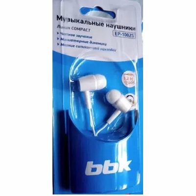 Наушники внутриканальные BBK EP-1002S 1.2м белый проводные в ушной раковине (EP-1002S (W))