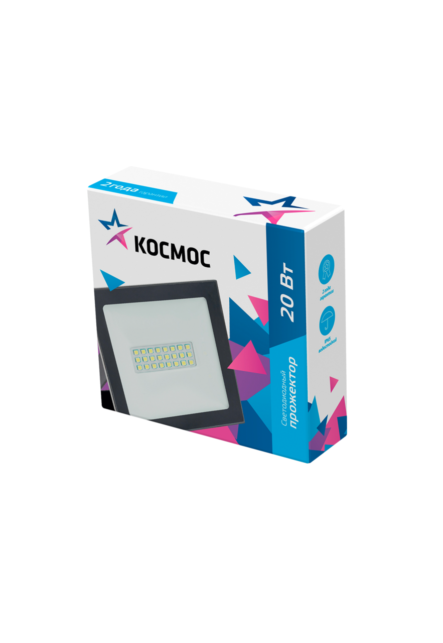 Прожектор 20Вт 1600лм 6500К IP65 Космос космос K_PR5_LED_20 (1 шт.) интересное: