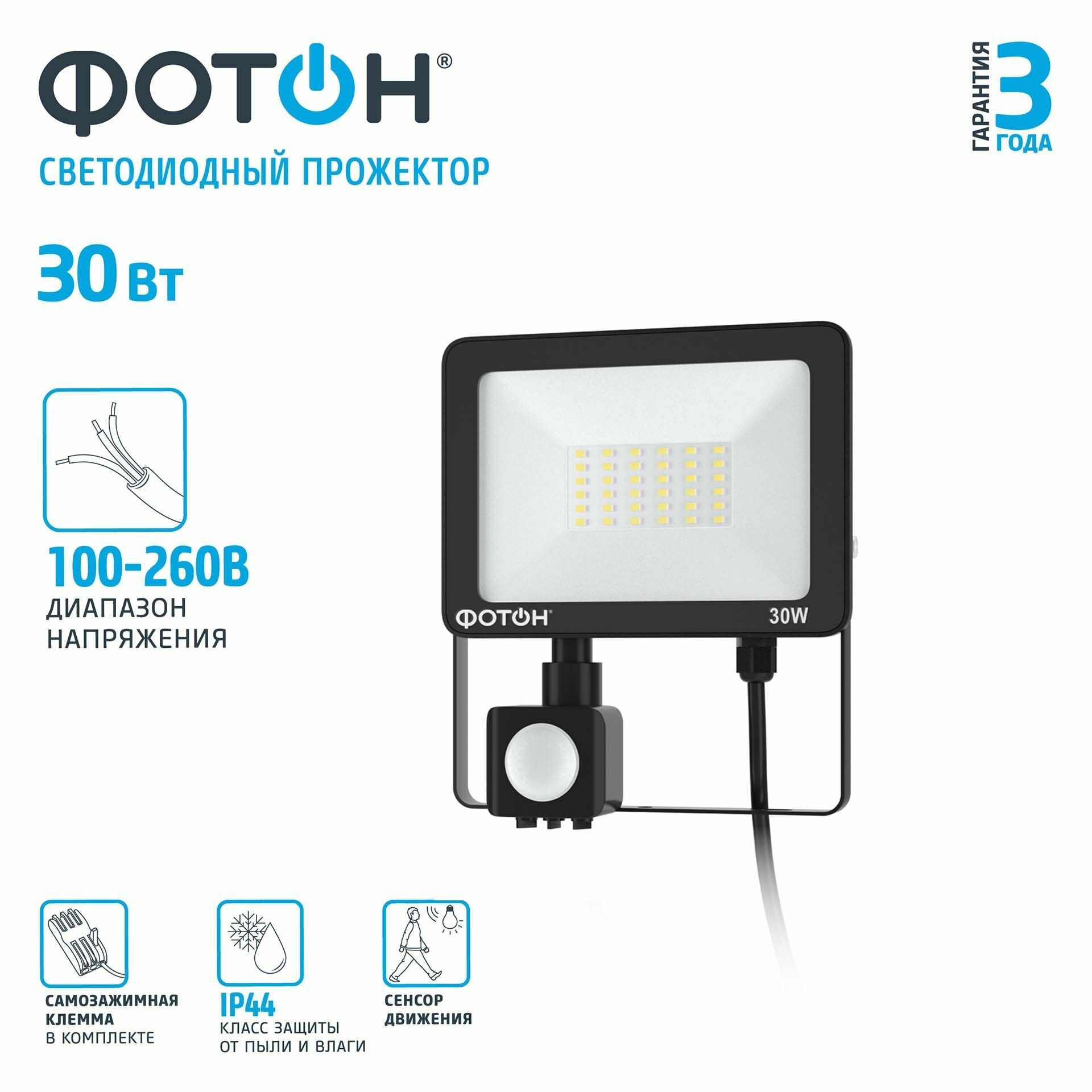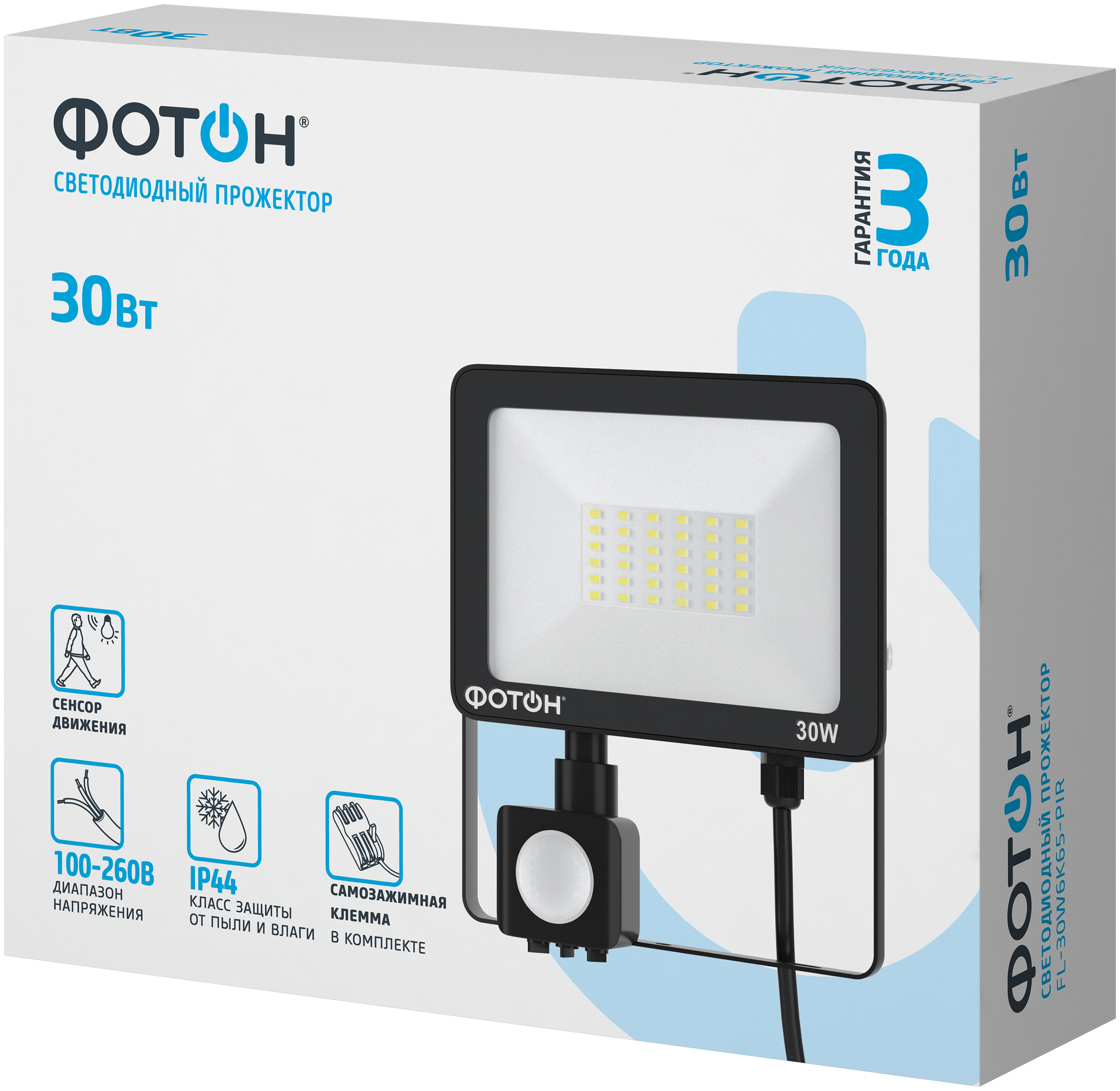 Фотон Прожектор светодиодный сетевой " Fl-30w6k65-pir 30W с датчиком движения 24540 .