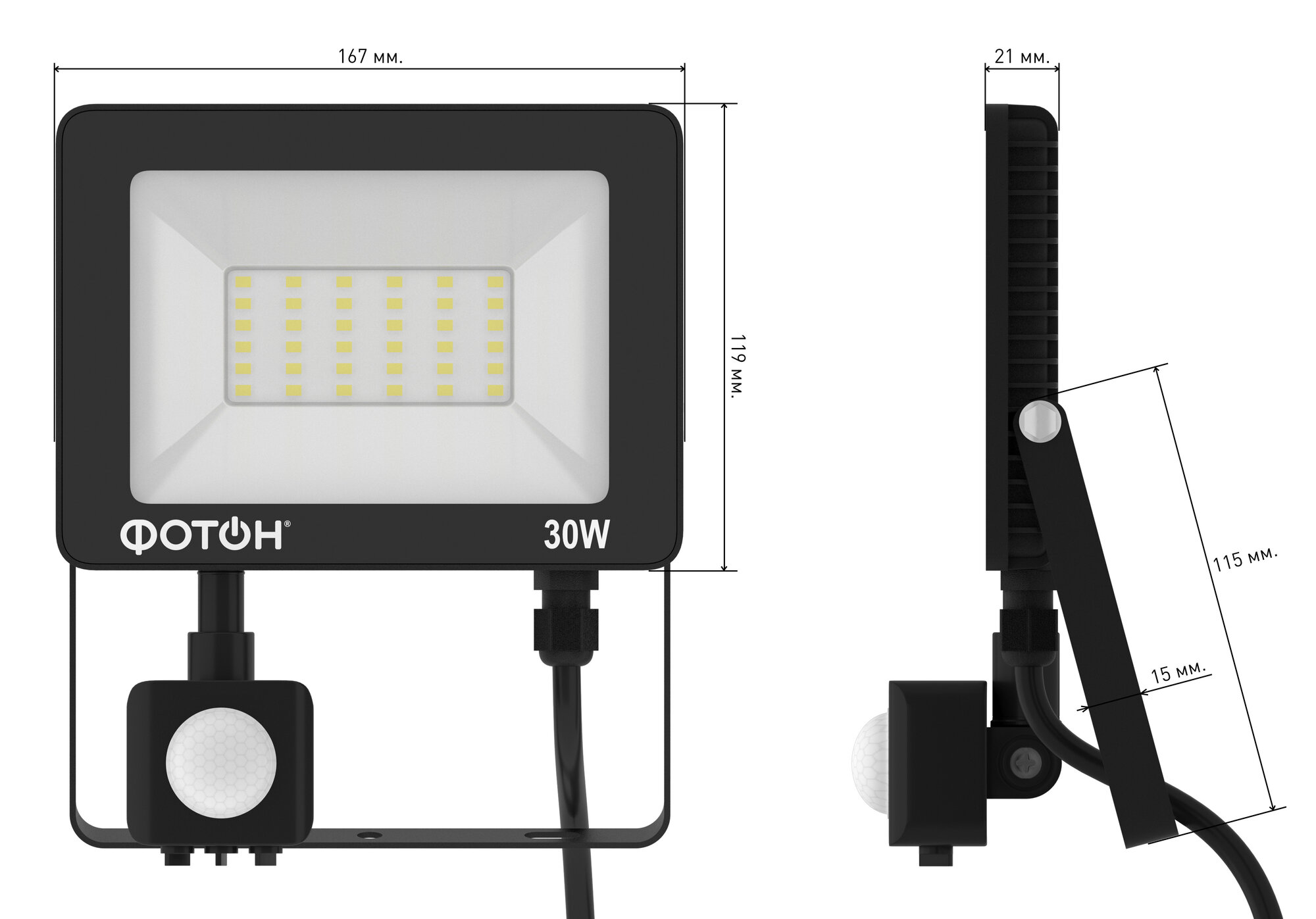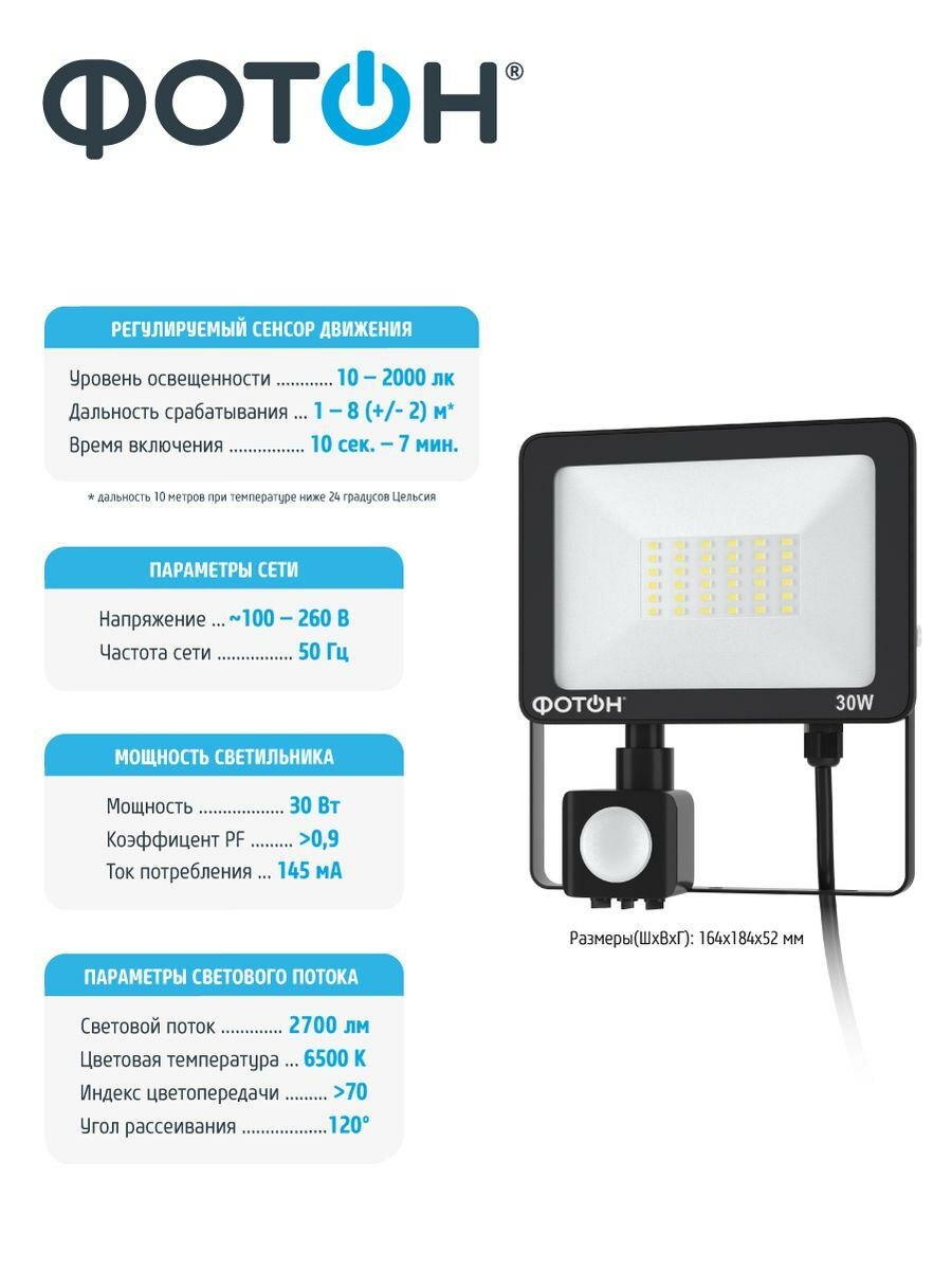 Прожектор светодиодный сетевой с датчиком движения фотон FL-30W6K65-PIR интересное: