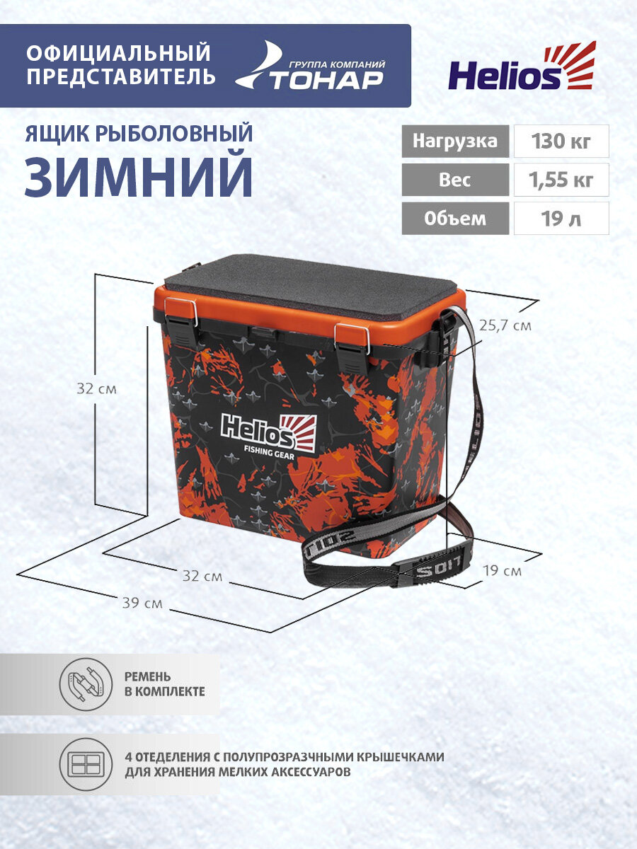 Ящик рыболовный зимний SHARK односекционный оранжевый Helios 19л / сиденье