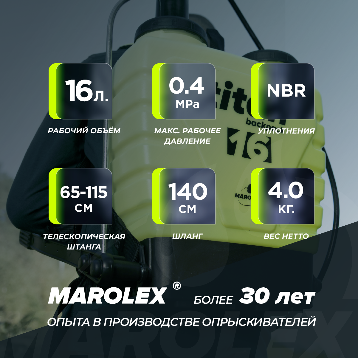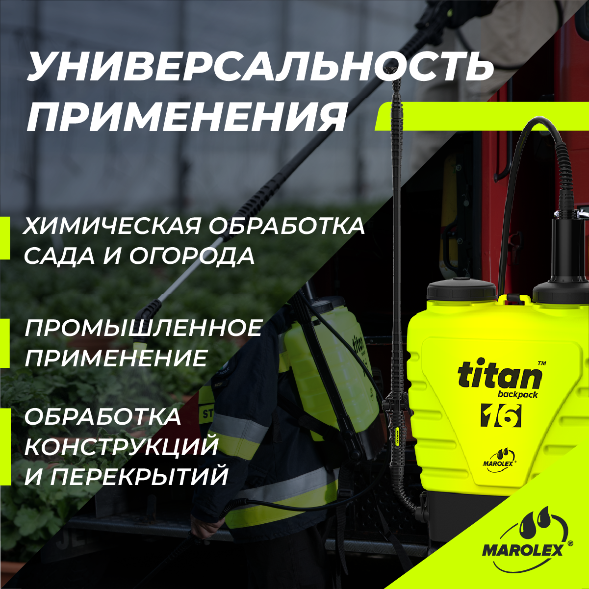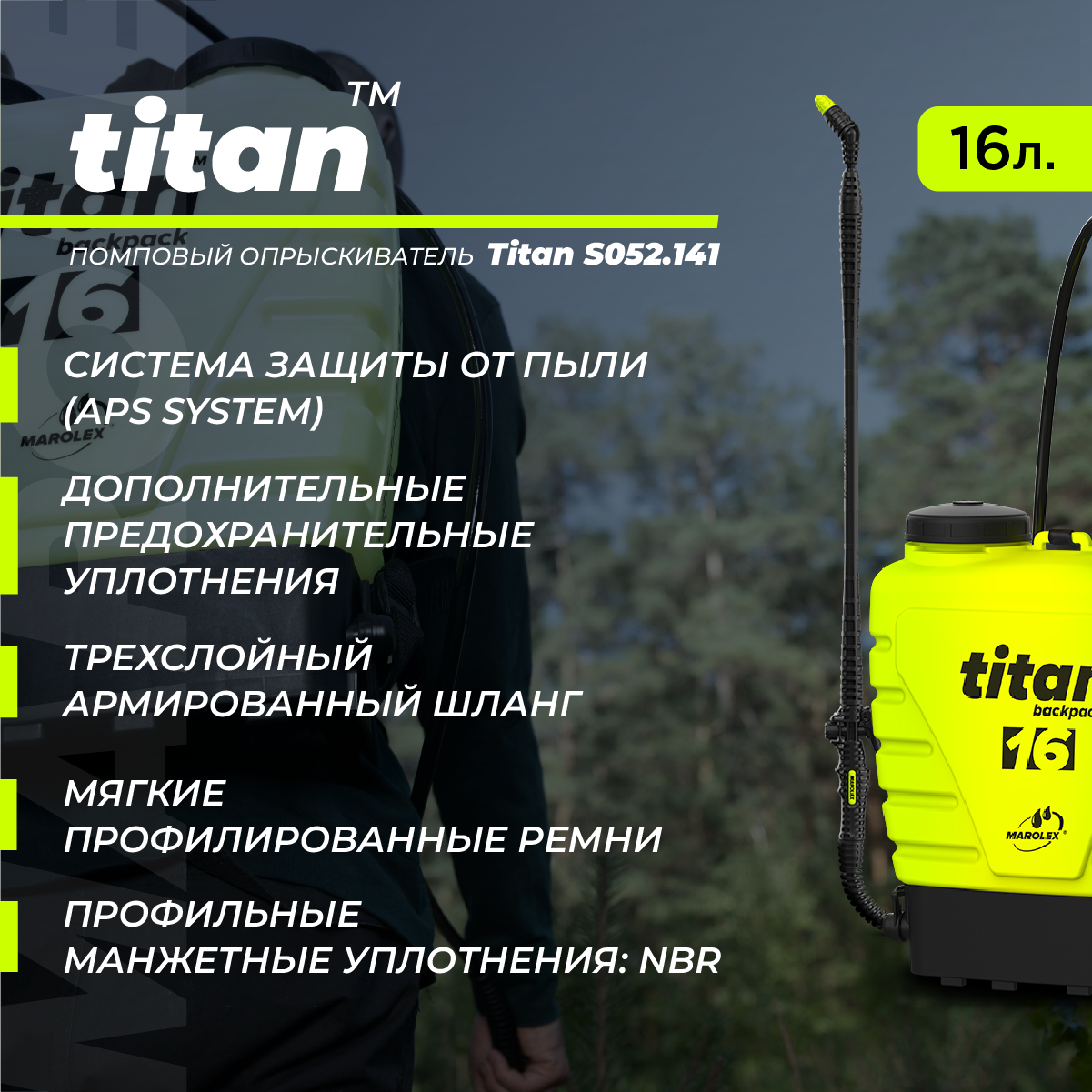 MAROLEX | Titan 16 - Ранцевый садовый помповый опрыскиватель. интересное: