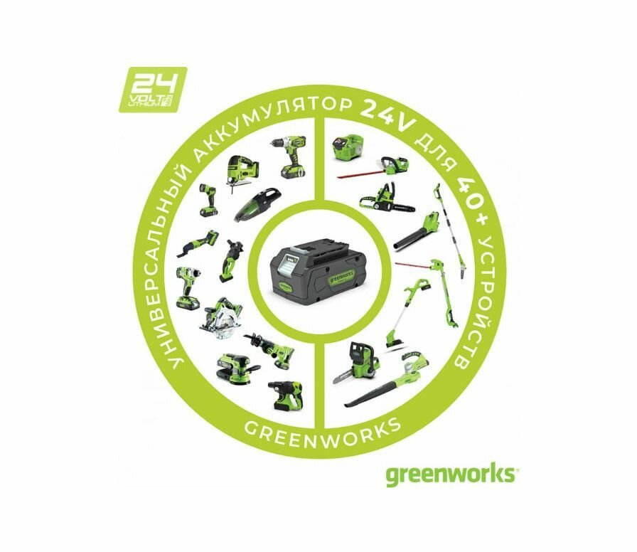 Цепная пила аккумуляторная Greenworks GD24CS30 24V 30 см бесщеточная с АКБ 4 А.ч. и ЗУ