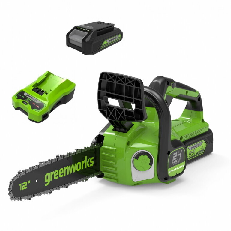 Цепная пила аккумуляторная Greenworks Арт. 2007007UB, 24V, 30 см, бесщеточная, c 1 АКБ 4 Ач и ЗУ