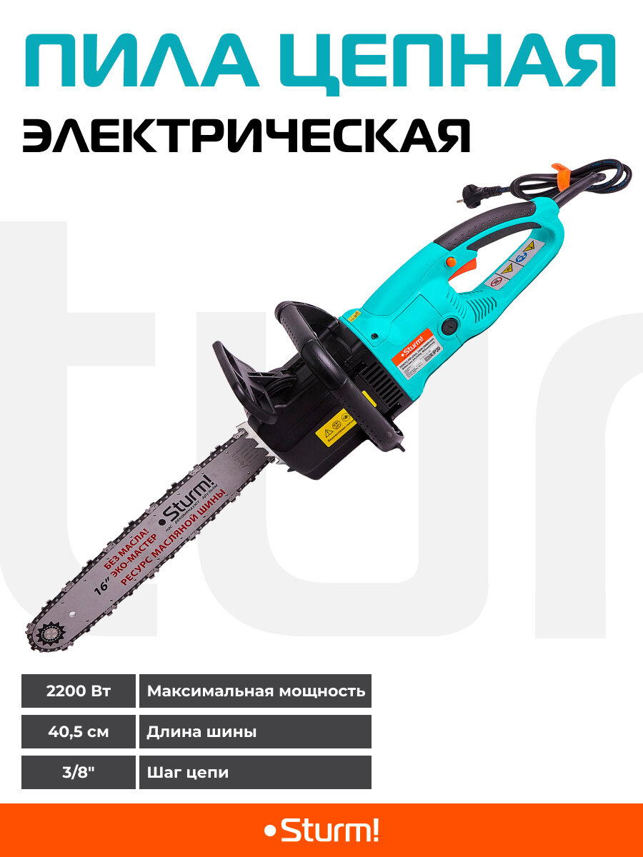 Электропилы STURM! Электрическая цепная пила Sturm! CC9922 2200Вт дл.шины:16" (40cm)
