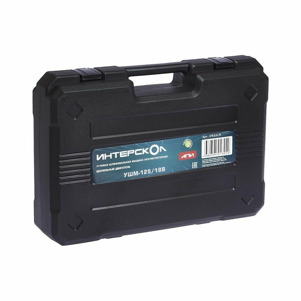 Бесщеточная аккумуляторная угловая шлифмашина ИНТЕРСКОЛ УШМ-125/18В 578.0.0.70, кейс, АПИ, без АКБ и ЗУ