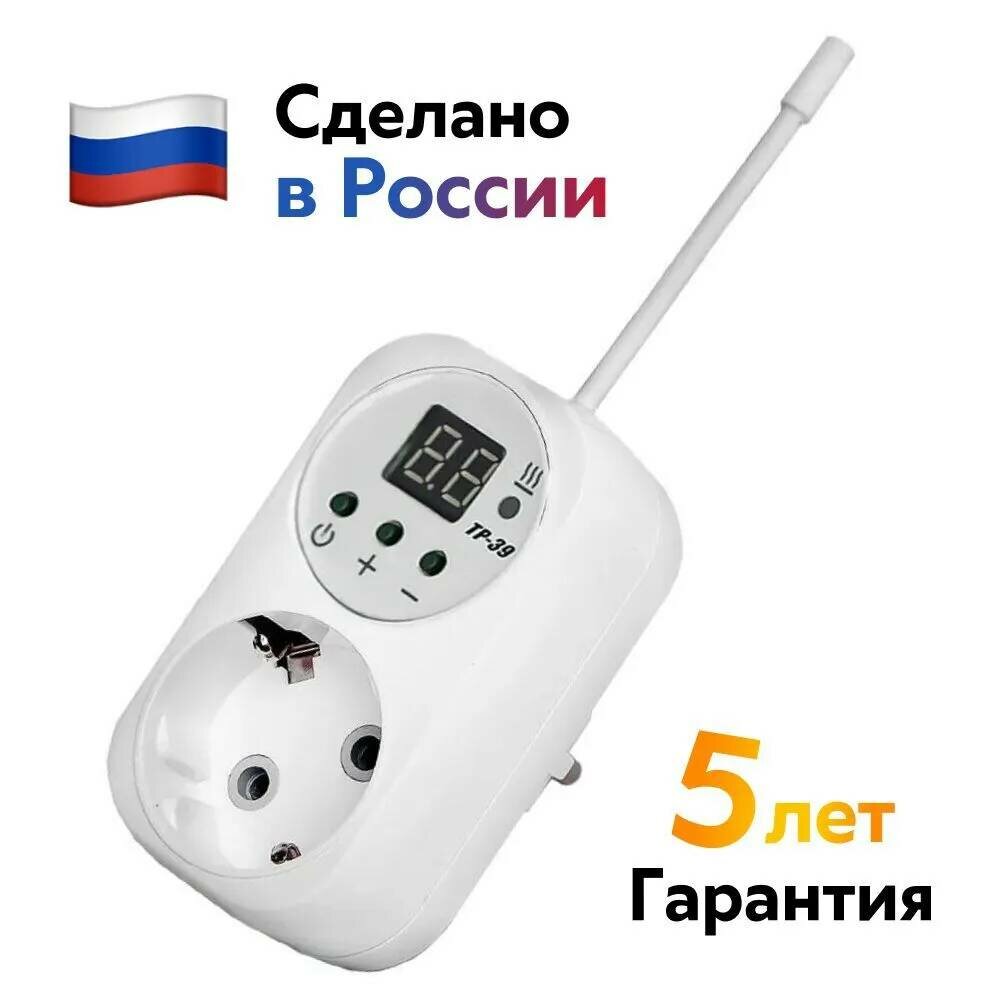 Терморегулятор в розетку ЭргоЛайт ТР-39 с дисплеем (универсальный, для любых электрических обогревателей, до 3500 Вт)