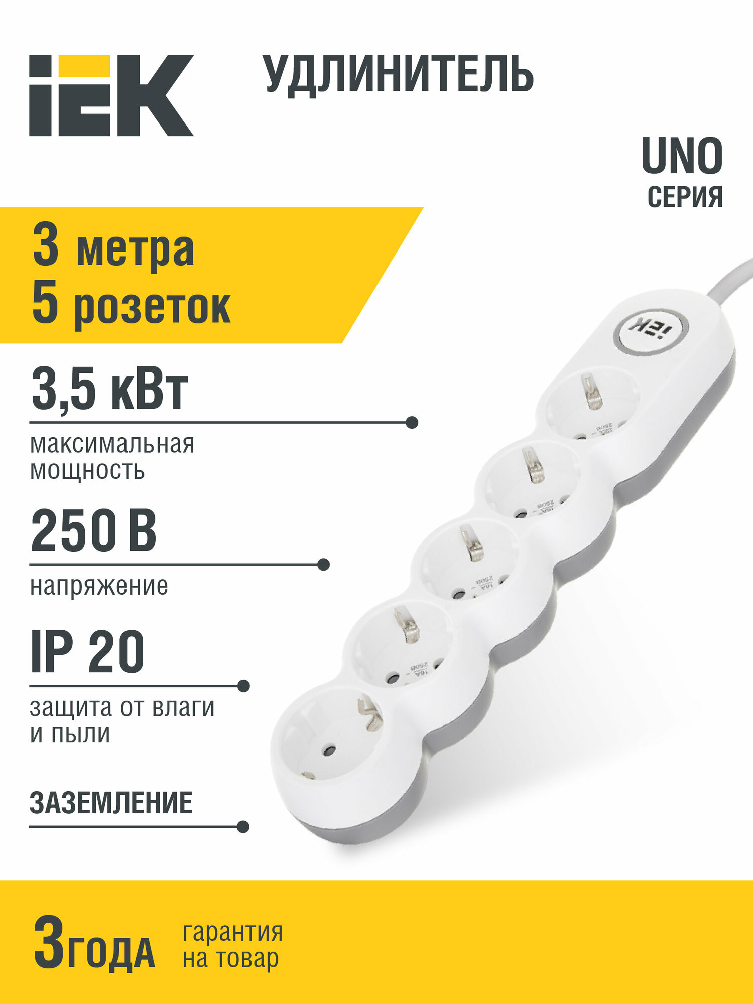 IEK IEK Удлинитель 3х1.5м с заземл. 16А IP20 Uno У03 2P+PE 250В 3х1.5 IEK WYP53-16-03-D15-Z